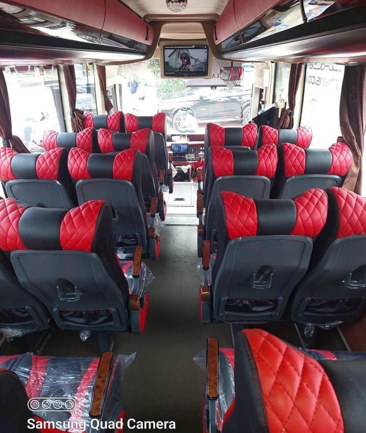 Medium Bus Luxury Coach ini memiliki kapasitas 33 Seats. Meskipun memiliki jumlah kursi yang mampu menampung rombongan cukup besar, konfigurasi kabin tetap dirancang untuk memberikan ruang gerak yang leluasa. Penataan kursi yang ergonomis memastikan setiap penumpang tidak merasa sesak, menjadikan unit ini sangat ideal bagi rombongan menengah yang ingin tetap menjaga kedekatan namun tetap menikmati privasi dan kenyamanan personal yang maksimal.