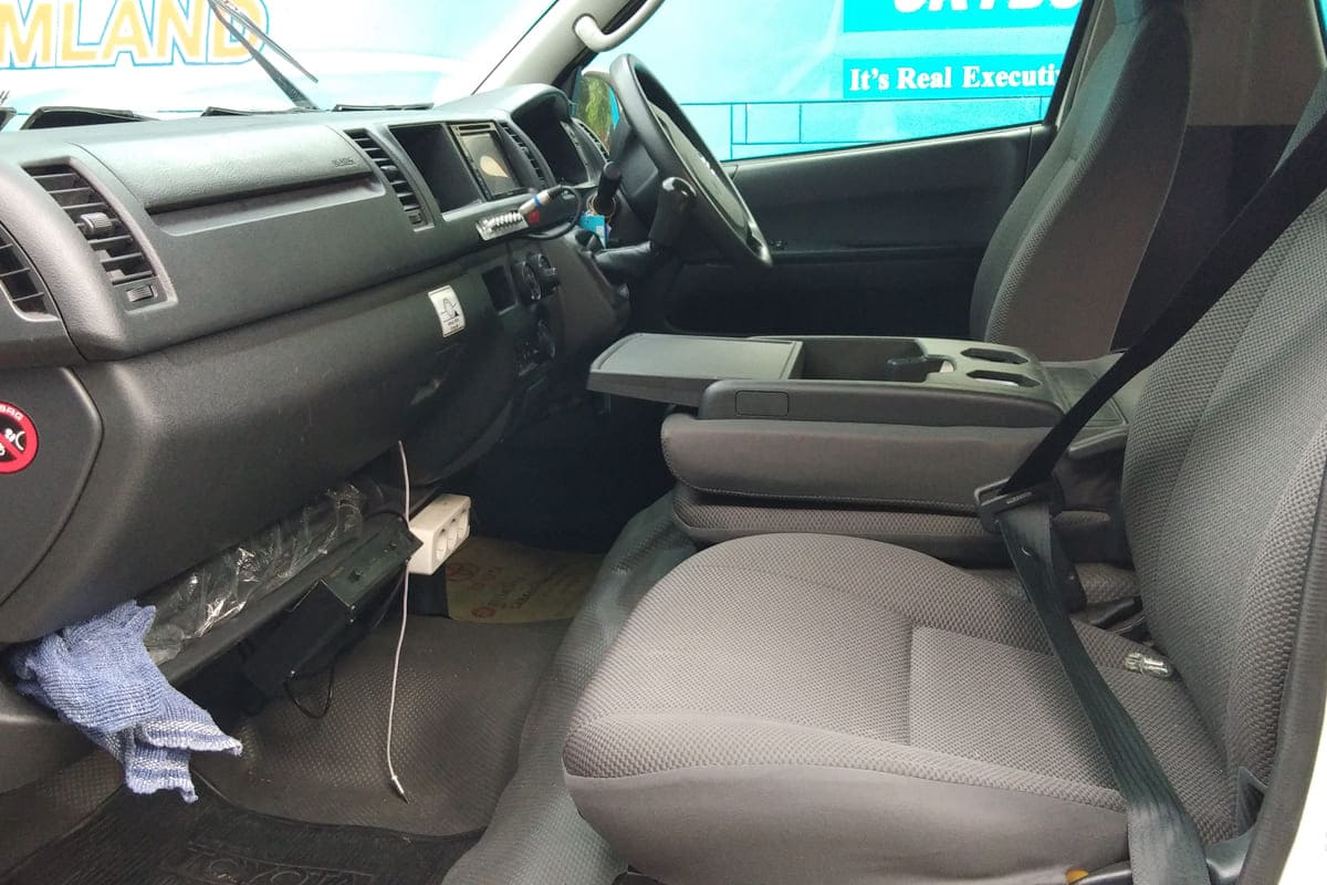 Kabin Senyap: Berbeda dengan kendaraan diesel konvensional, Hiace memiliki tingkat peredaman suara yang sangat baik, sehingga suara bising dari luar tidak masuk ke dalam kabin.